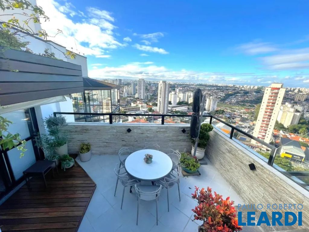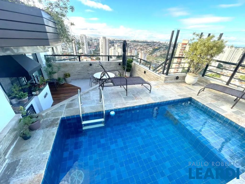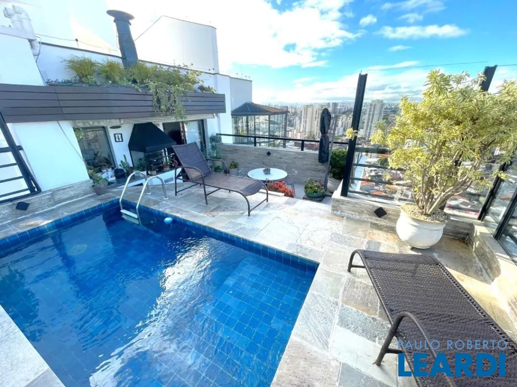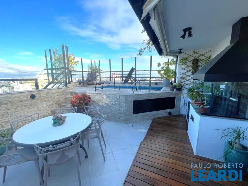 Linda cobertura com 220m2, 3 dorms, sendo 3 suites, 4 vagas de garagem o 3º dormitório hoje está como Closet porém fácil reversão para dormitório novamente - Vista excepcional (360 graus) de São Paulo Andar Superior: - Piscina climatizada com espreguiçadeiras - Churrasqueira ao lado da Piscina - Área da piscina envidraçada - Ar condicionado em todos ambientes ( ar quente e ar frio) - Sala de estar - Varanda com fechamento de vidro e com uma vista livre e linda!! - Cozinha gourmet fechada , ao lado da piscina - Ofurô em local fechado com vista panorâmica - Banheiro lavabo- Escritório com vista livre - Elevador social atende a cobertura - Área externa para jardim com cadeiras e mesa. Piso Inferior: - Lavabo- Sala de estar - Varanda com fechamento de vidro e com uma vista livre e linda!! - Cozinha ampla- Banheiro de empregada - Lavanderia - Dependência de empregada para uso geral - 3 suites com closet na suite master - Escada de madeira grande em caracol que dá acesso ao piso superior - Ar condicionado em todos ambientes (ar quente e ar frio) Características do Lazer: - churrasqueira gourmet e espaço apropriado - espaço gourmet - jardim - piscina climatizada - quadra poliesportiva fechada de grade de proteção - playground- academia - salão de festas Acesso para diversas vias importantes,- proximidade com padarias, restaurantes, bares, comércio, farmácia, escolas, shoppings,- rua arborizada Preço e disponibilidade do imóvel sujeitos à alteração, sem aviso prévio! Venha conferir, agende uma visita www.leardi.com.br