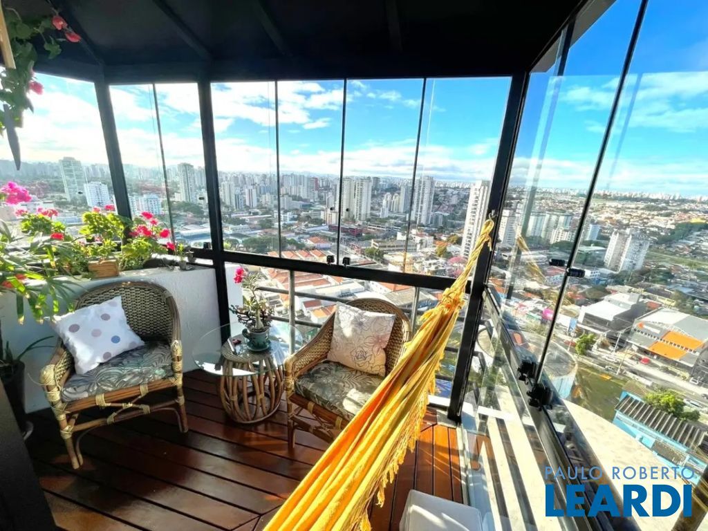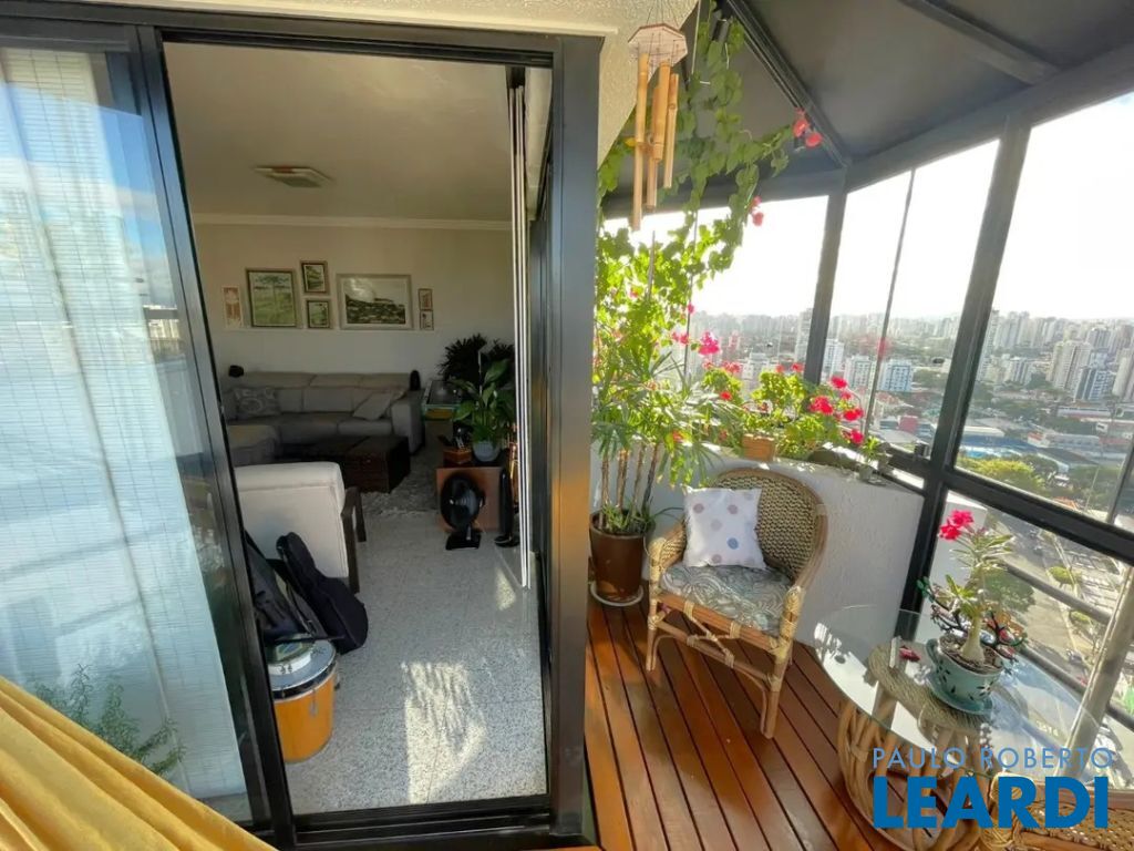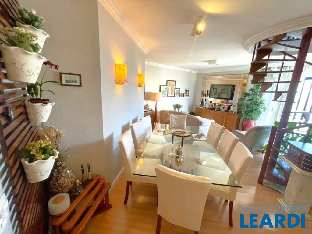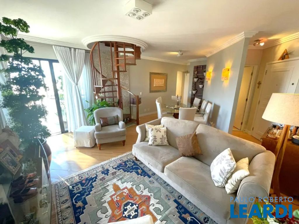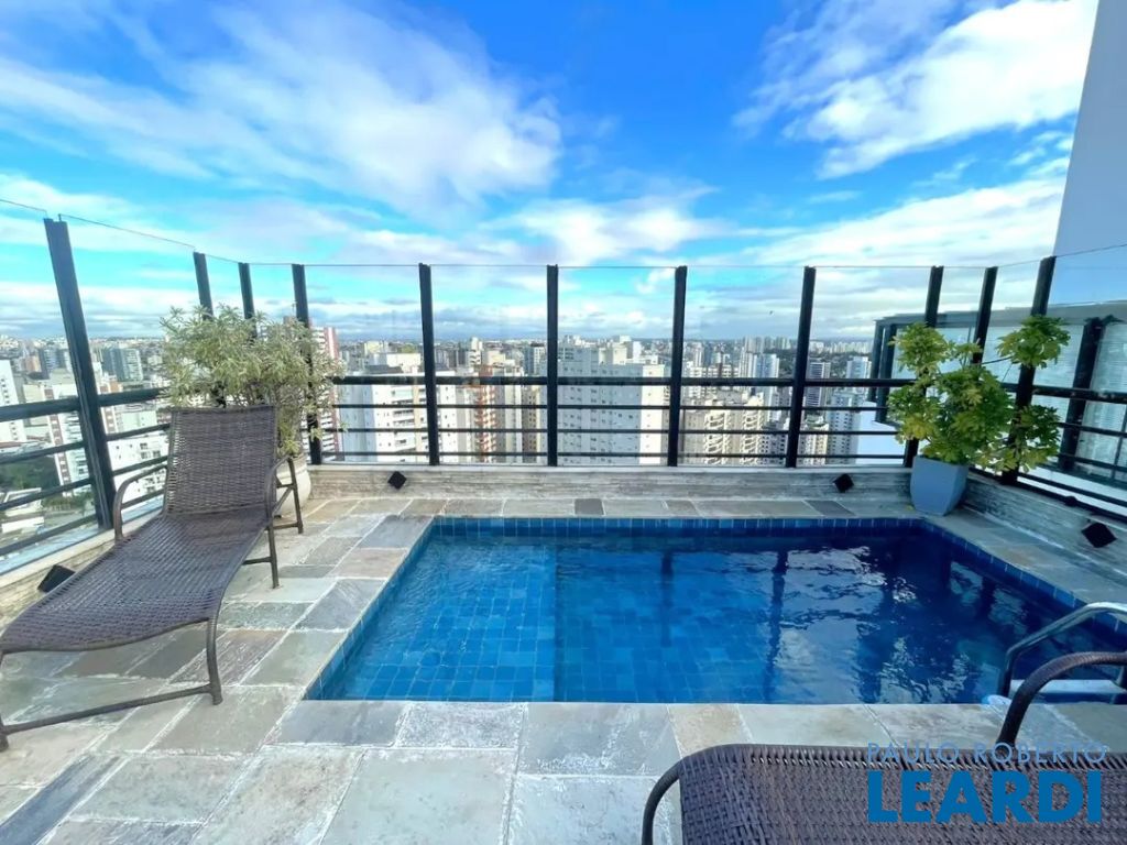 Linda cobertura com 220m2, 3 dorms, sendo 3 suites, 4 vagas de garagem o 3º dormitório hoje está como Closet porém fácil reversão para dormitório novamente - Vista excepcional (360 graus) de São Paulo Andar Superior: - Piscina climatizada com espreguiçadeiras - Churrasqueira ao lado da Piscina - Área da piscina envidraçada - Ar condicionado em todos ambientes ( ar quente e ar frio) - Sala de estar - Varanda com fechamento de vidro e com uma vista livre e linda!! - Cozinha gourmet fechada , ao lado da piscina - Ofurô em local fechado com vista panorâmica - Banheiro lavabo- Escritório com vista livre - Elevador social atende a cobertura - Área externa para jardim com cadeiras e mesa. Piso Inferior: - Lavabo- Sala de estar - Varanda com fechamento de vidro e com uma vista livre e linda!! - Cozinha ampla- Banheiro de empregada - Lavanderia - Dependência de empregada para uso geral - 3 suites com closet na suite master - Escada de madeira grande em caracol que dá acesso ao piso superior - Ar condicionado em todos ambientes (ar quente e ar frio) Características do Lazer: - churrasqueira gourmet e espaço apropriado - espaço gourmet - jardim - piscina climatizada - quadra poliesportiva fechada de grade de proteção - playground- academia - salão de festas Acesso para diversas vias importantes,- proximidade com padarias, restaurantes, bares, comércio, farmácia, escolas, shoppings,- rua arborizada Preço e disponibilidade do imóvel sujeitos à alteração, sem aviso prévio! Venha conferir, agende uma visita www.leardi.com.br